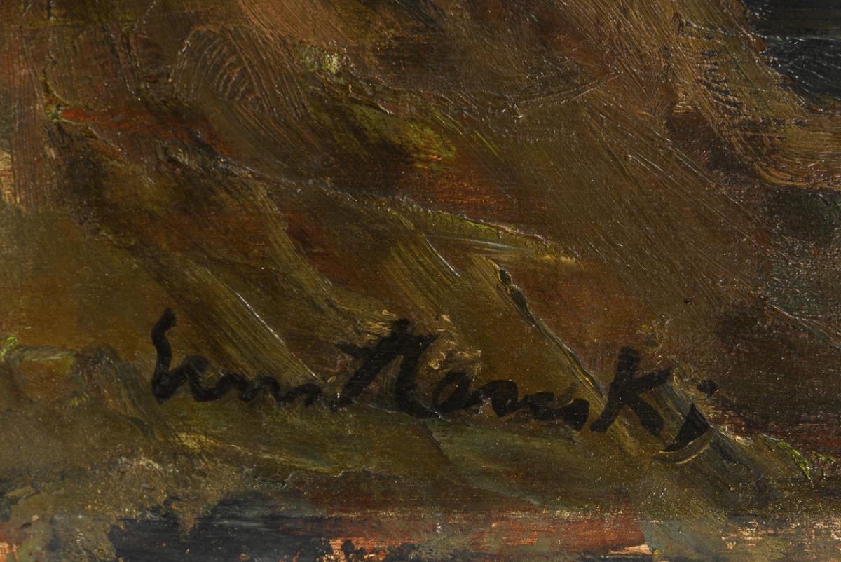 Oil / wood pulp. Signed lower left.
