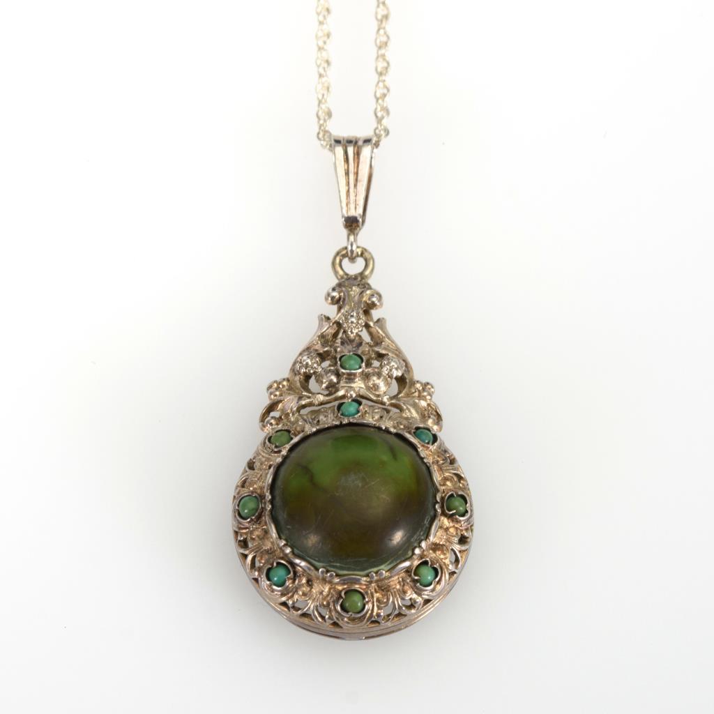 Anhänger mit grünen Steinen, an Kette