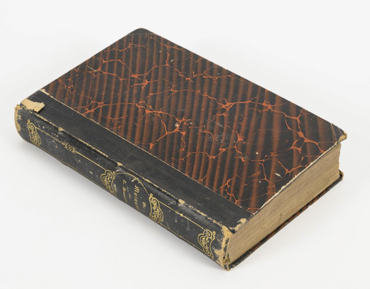 458 pages of text, a map and 54 steel engravings. Half leather binding. Signs of age and wear.