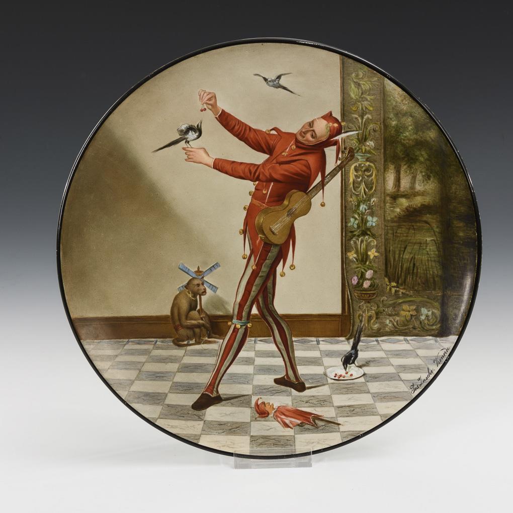 Rare picture plate with harlequin and animals. Josef Steidl, Znojmo.