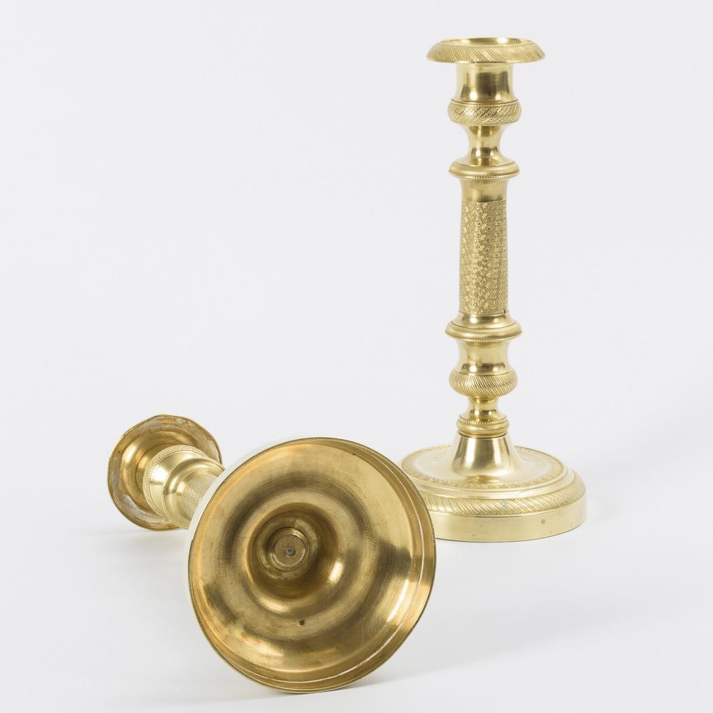 Bronze chandelier each with fine ornamental friezes on the stepped round base, column shaft and vase spout.