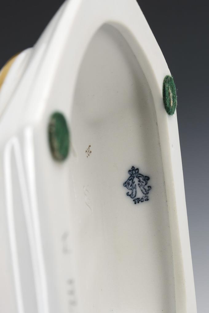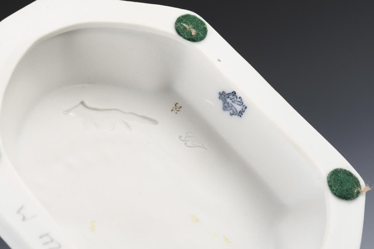 Stamped lacing fox, blue mark Aelteste Volkstedter and former mark, 2nd h. 20th c. Monogrammed. Model no: 524; replica of a model for Schwarzburger Werkstätten. Design: 1925. SCHLAMEUS, Marta(1876-1961)