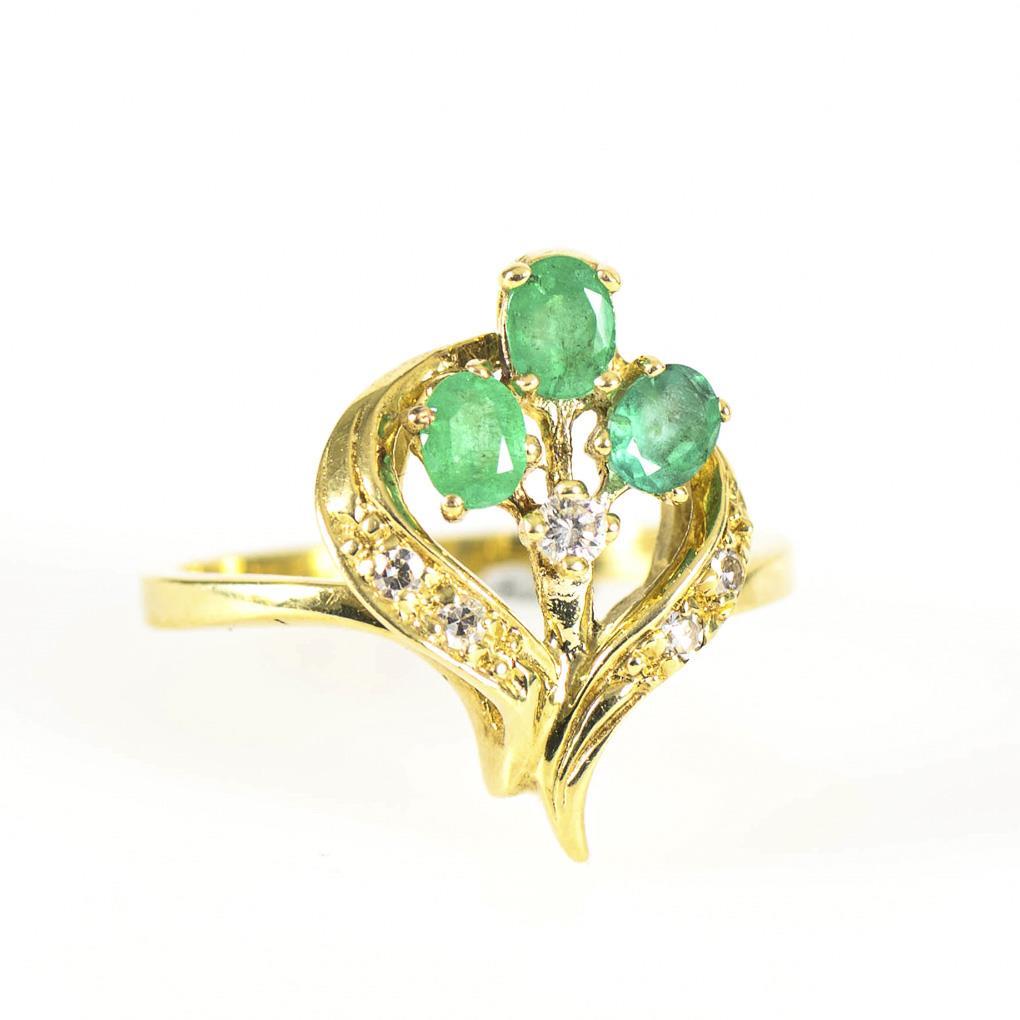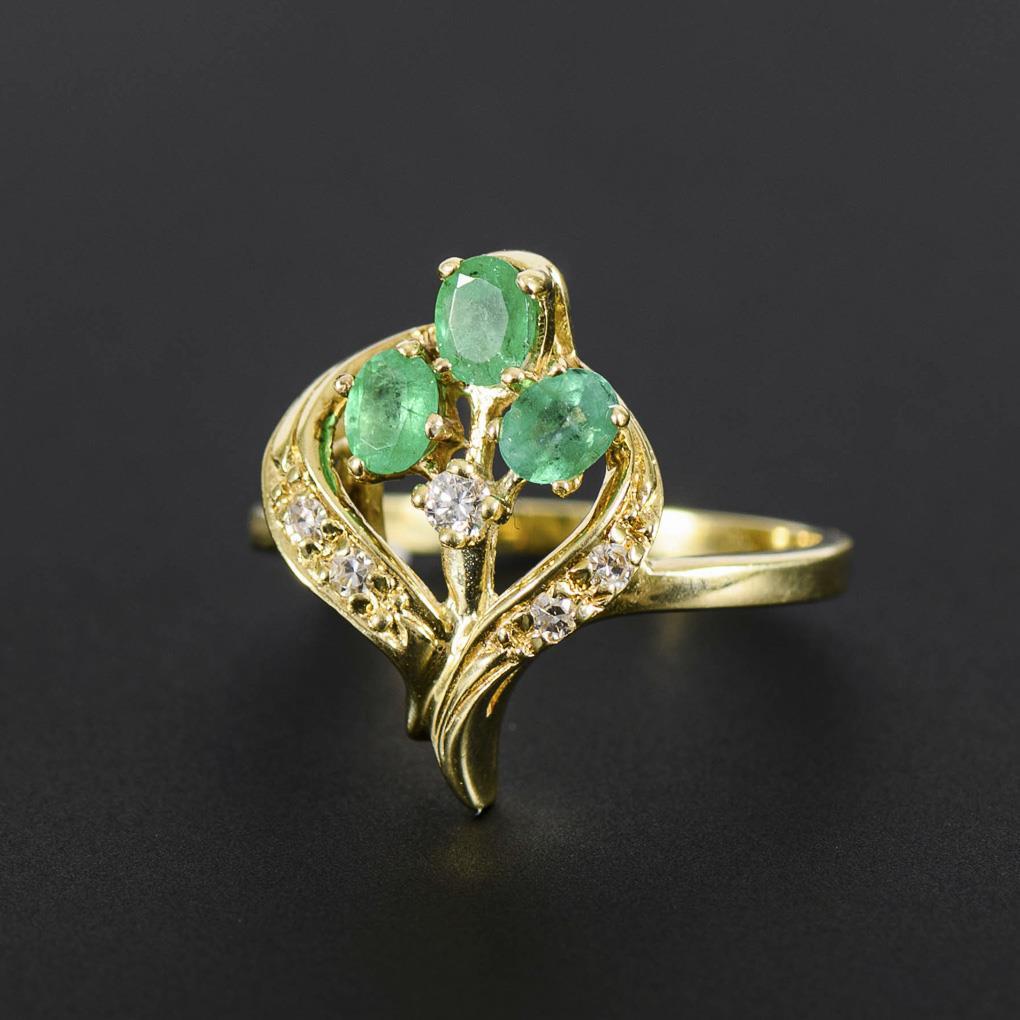 Ring with emeralds and diamonds.