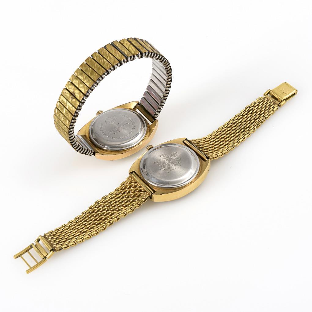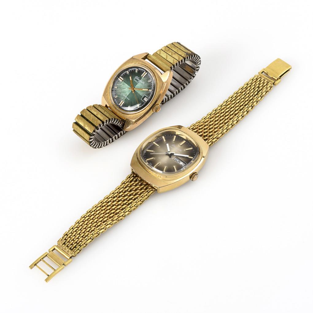 2 gold-plated men's wrist watches "Spezimatic" and "Spezichron". GUB Glashütte.