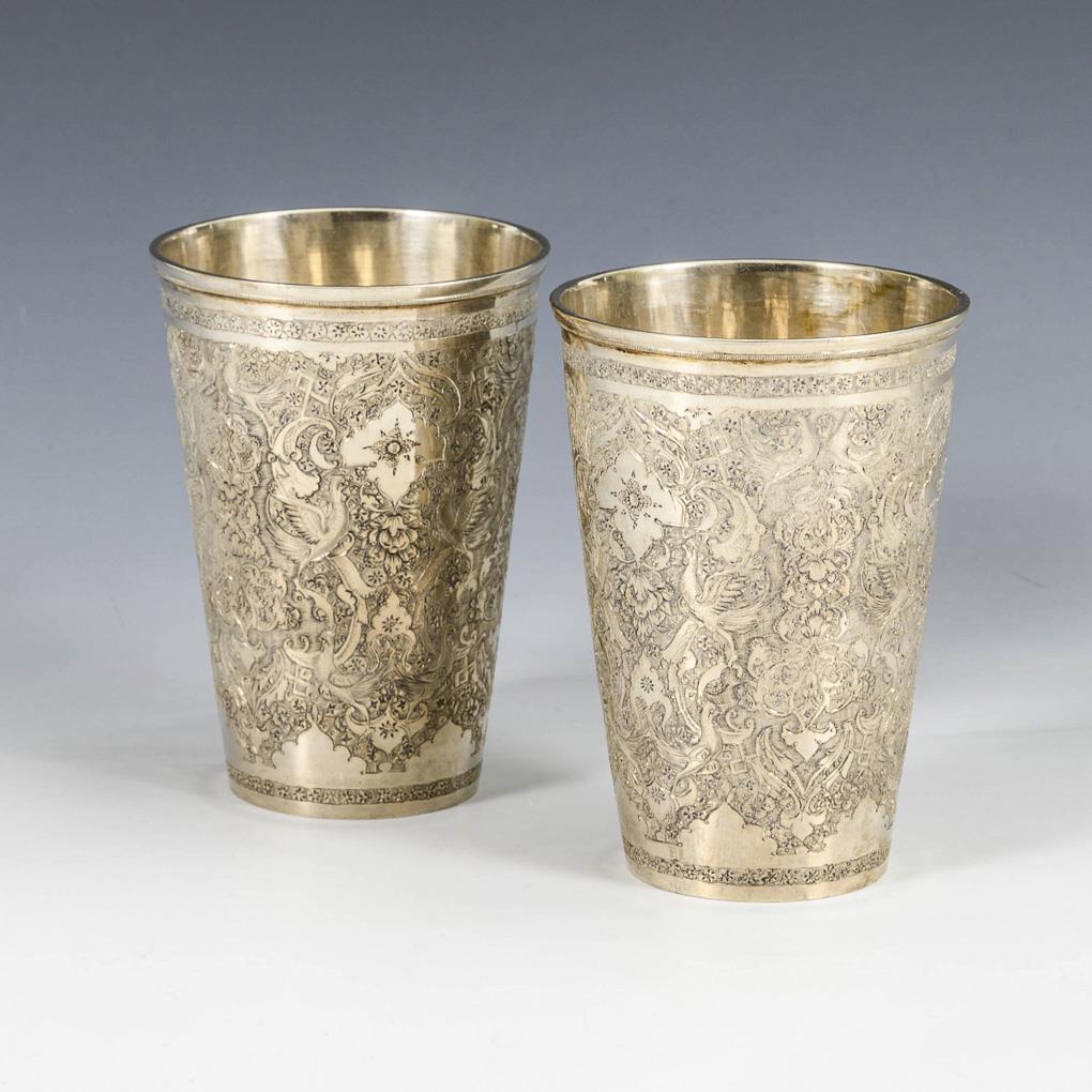 2 conical richly decorated cups.