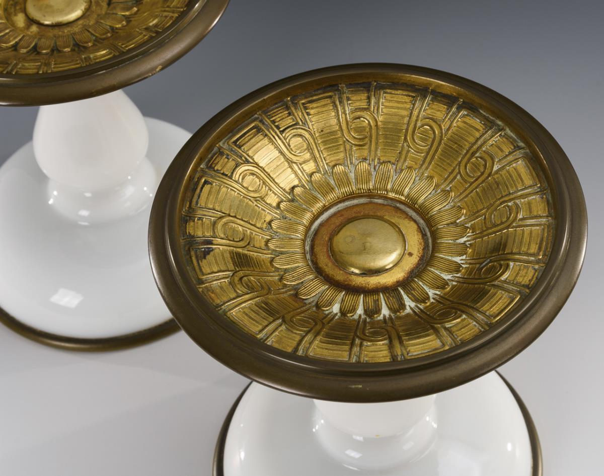 White frosted glass, brass. H 19 cm.