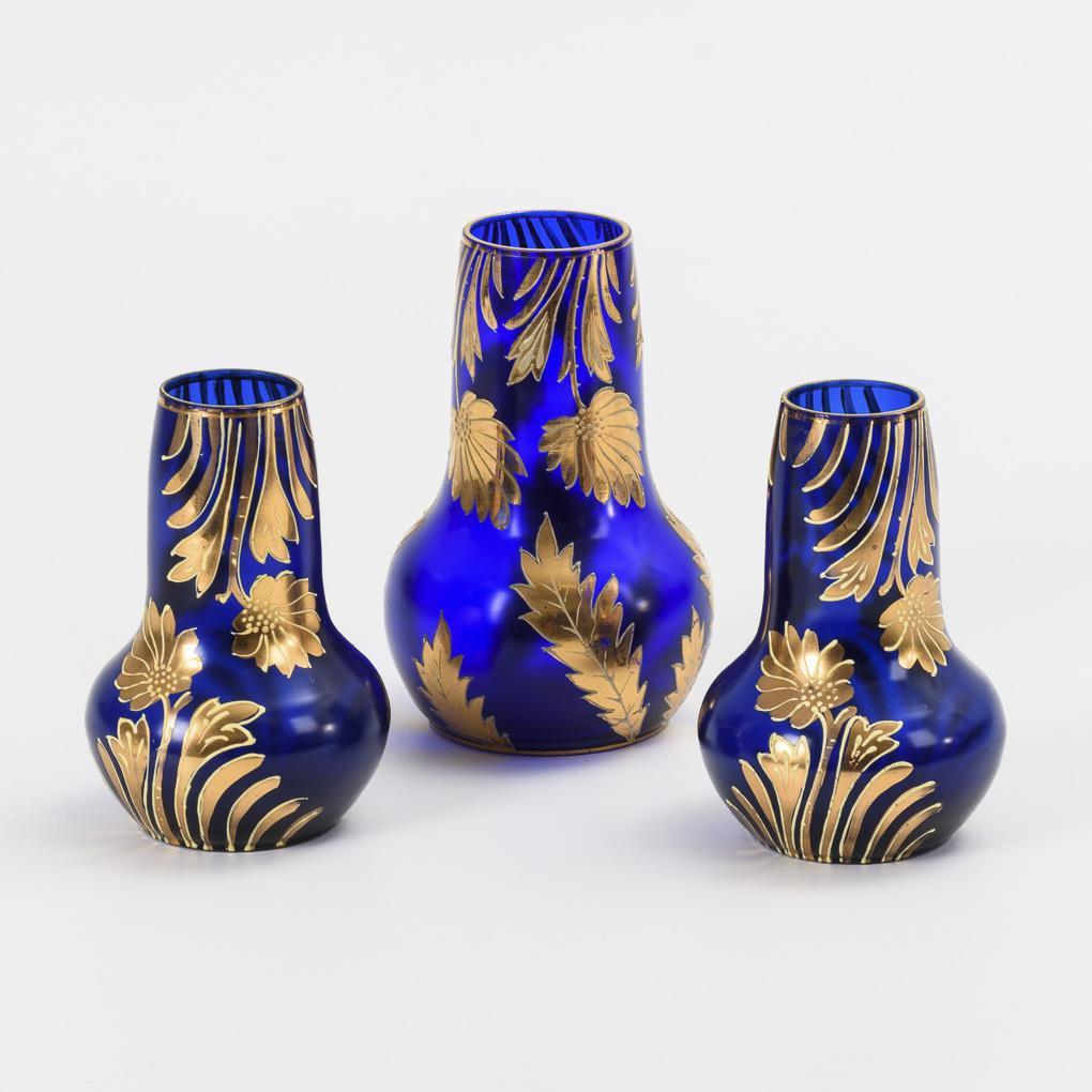 3 Art Nouveau vases with gold painting. Haida.