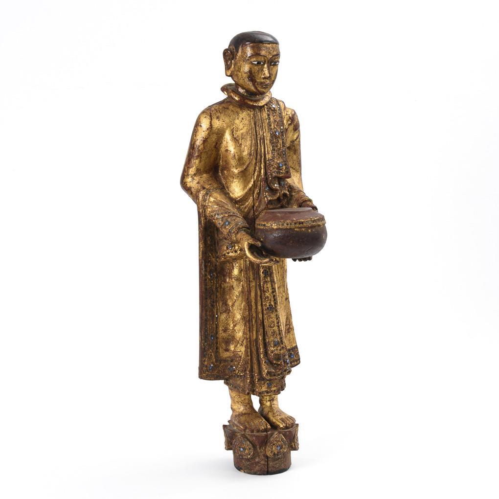 Wooden figure - standing man with sacrificial bowl.