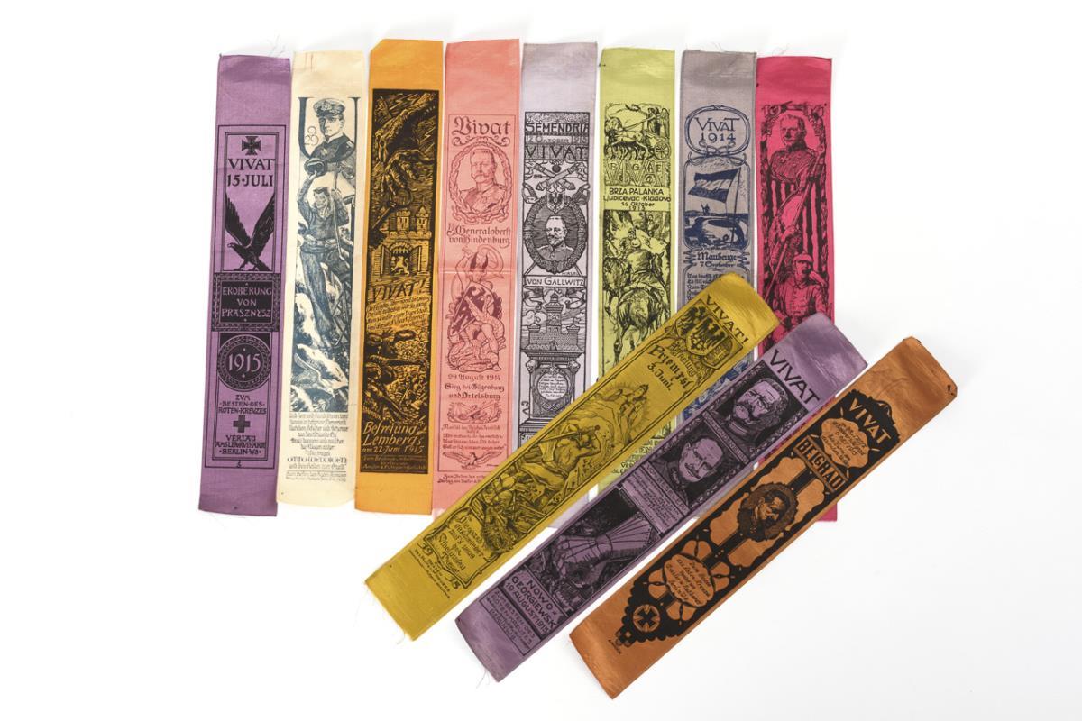 Intensive color decorative ribbons on various occasions: Hindenburg's victory at Hilgenburg and Ortelsburg, conquest of Prasznysz, Maubeuge, Liège, Novo-Georgiewsk, Belgrade, Przemysl etc. Minimal signs of age / wear.