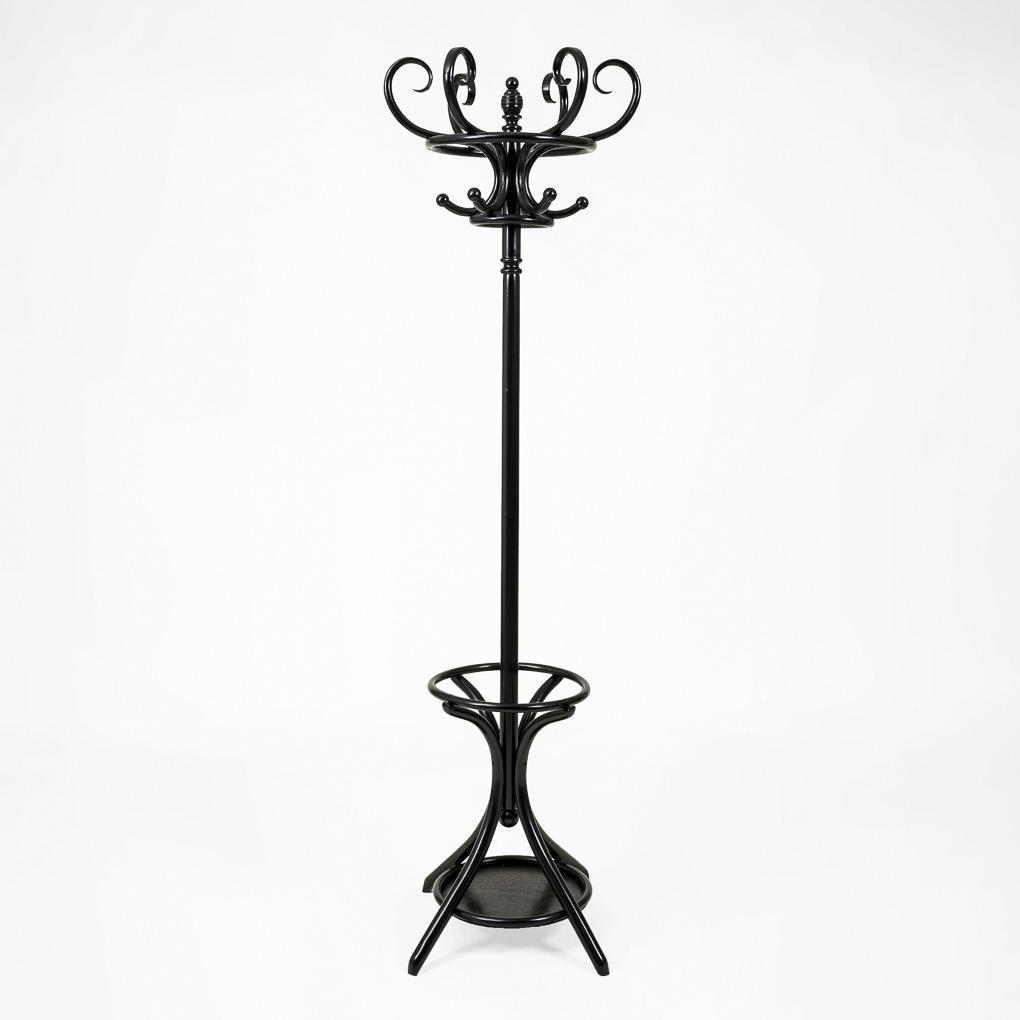 Art Nouveau dressing stick with rotating crown and umbrella stand with drip plate, on 4 curved legs. Restored, slight signs of age/use.