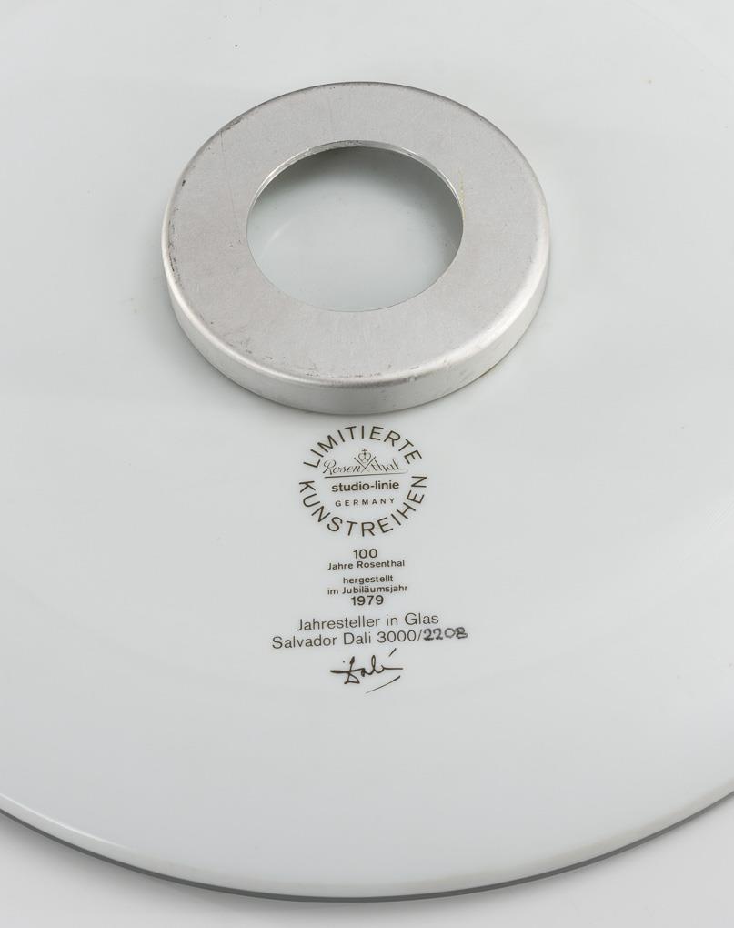 Marketed Rosenthal 1979, limited edition, this plate numbered "3000/2208". Inscribed "Dalí".