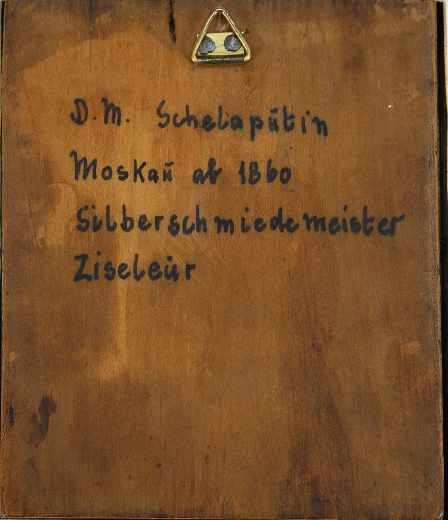 Russian icon with silver oklad. Master Shelaputin, Moscow.