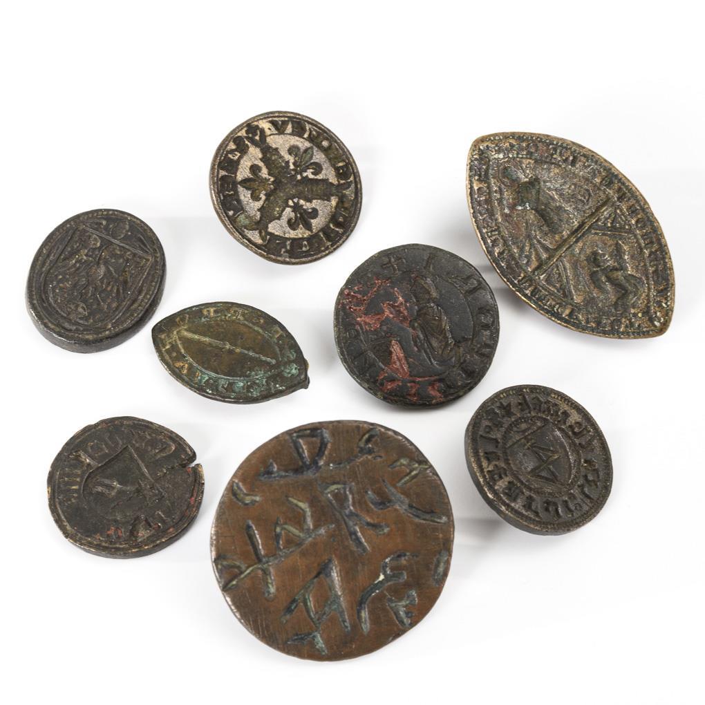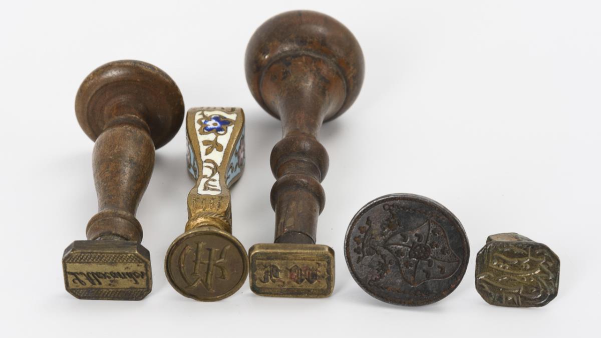 brass/bronze and 1x agate. Handles mostly wood, 2x brass/bronze, 1x multicolored pit enamel. Ø Typar 1,5 - 3,5 cm.