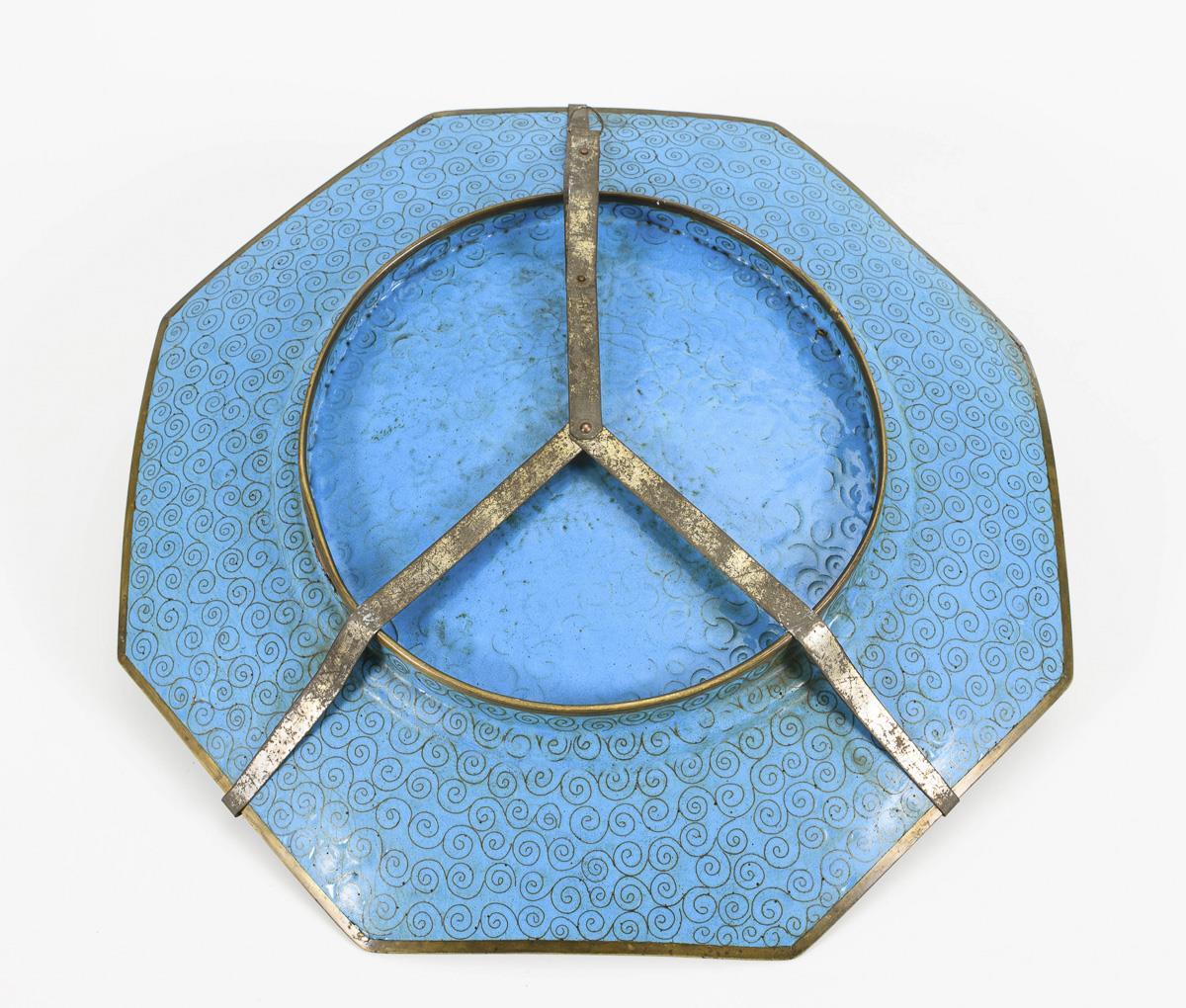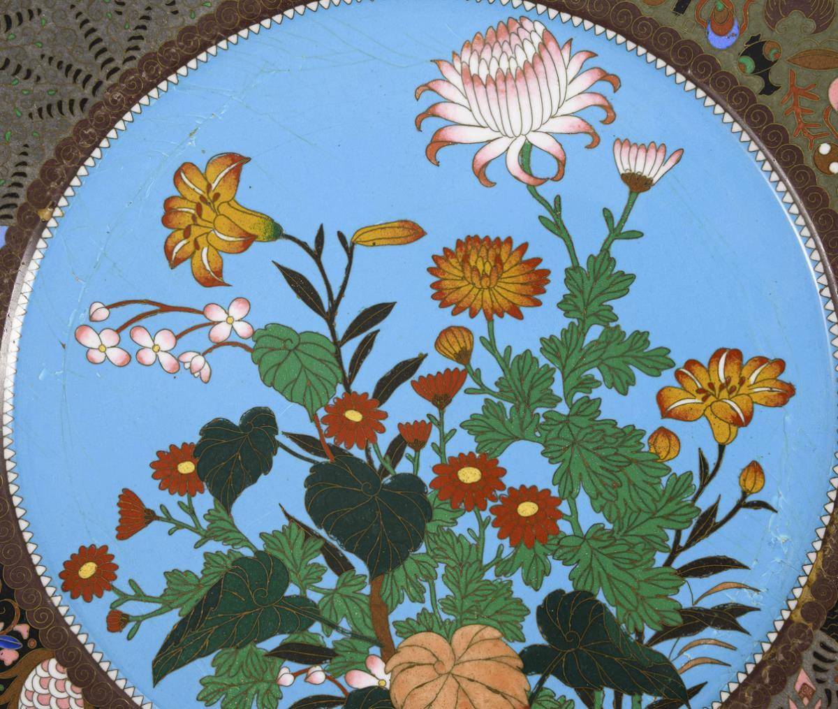 Polychrome floral decoration in the mirror as a contrast to the delicate border patterns. Wall mount. In the mirror several small surface damage.