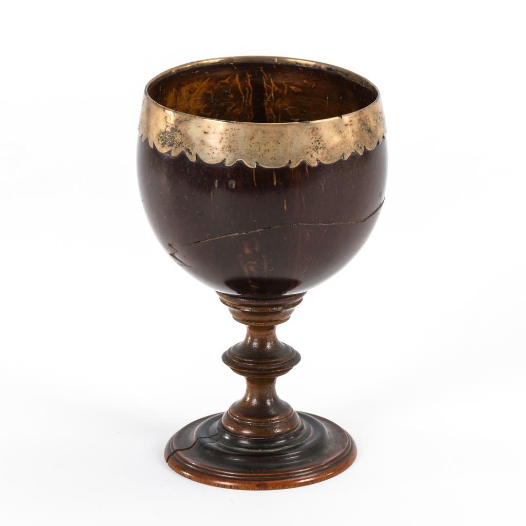 Kuppa und Silberrand wohl 17./18. Jh., Drechselfuß um 1900.
