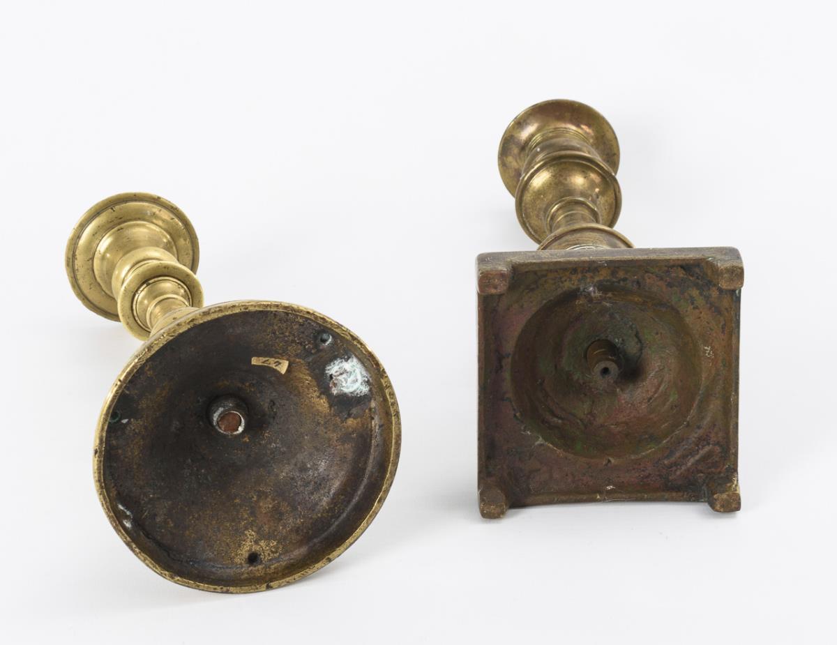 Massive bronze chandelier with baluster stem and vase grommets. Baroque chandelier with round base, probably baroque chandelier with square base. Holes in round base closed with hard solder from removed electrification, signs of age/use.