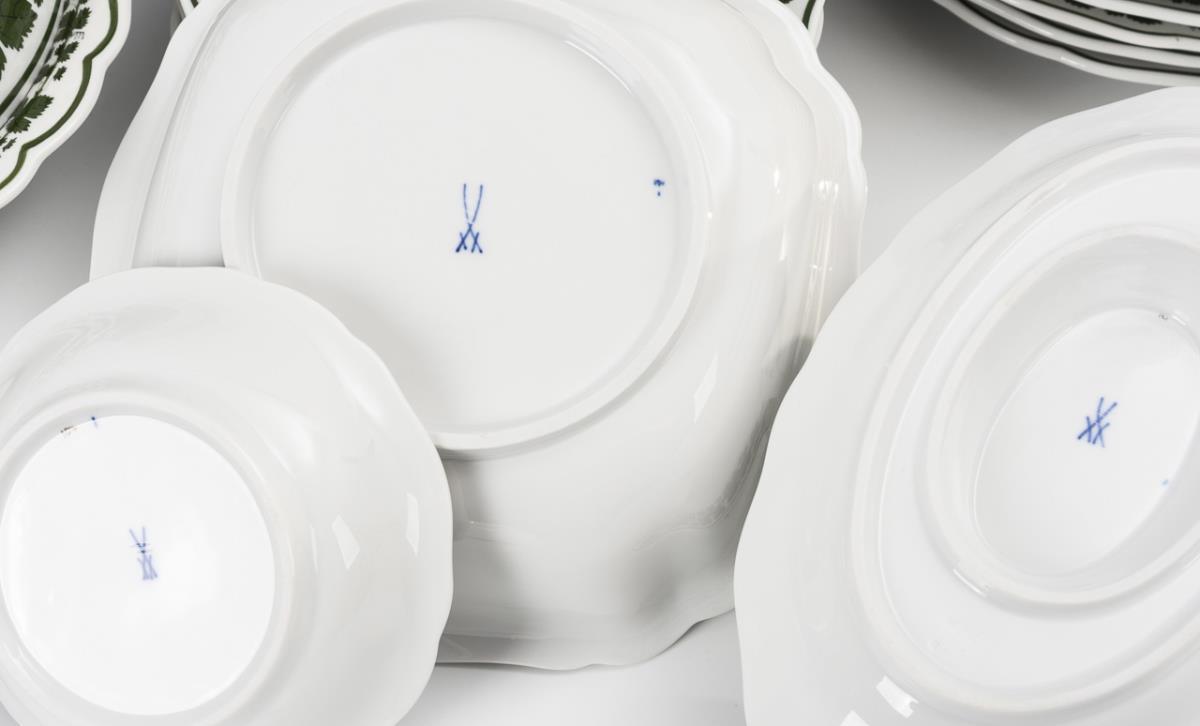 Dining service with vine leaves decor. Meissen.