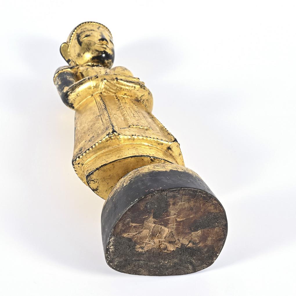 Possibly also monk with begging bowl, barefoot on round base. Compact figure in balanced proportions. One ear with small chip, gold setting rubbed.
