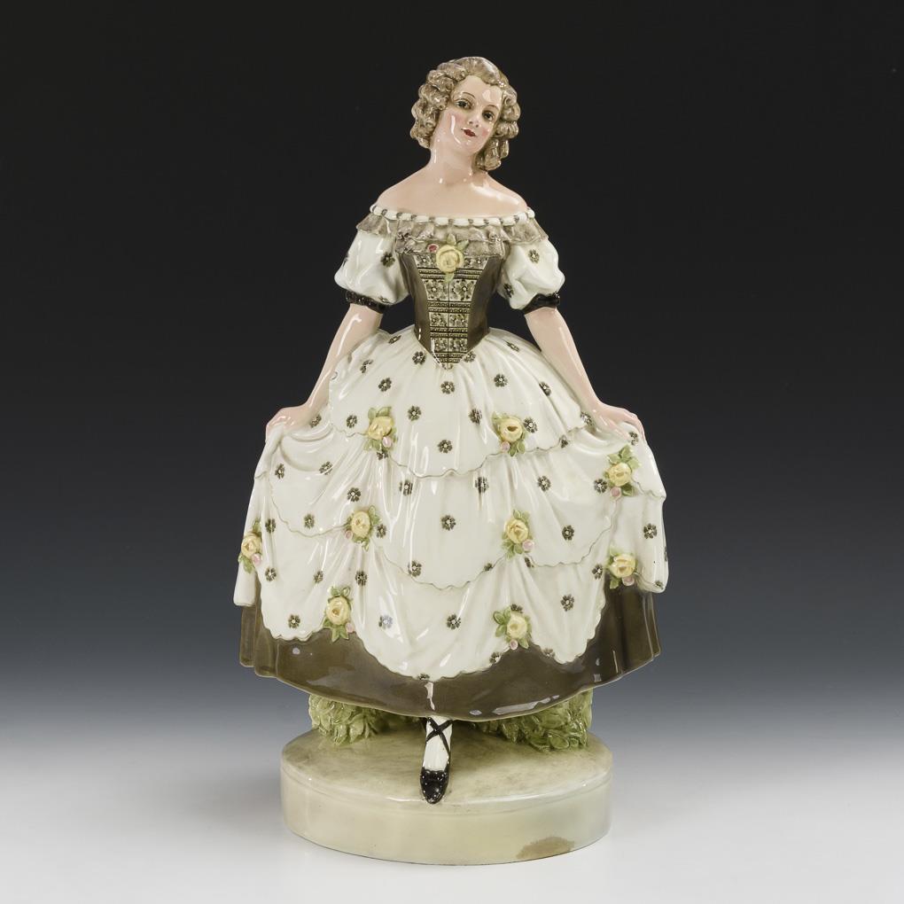 Possibly depicting Anna Pavlova (1882-1931). Verso restored at the hem of the skirt and slightly glaze bumped, 1 foot tip bumped.