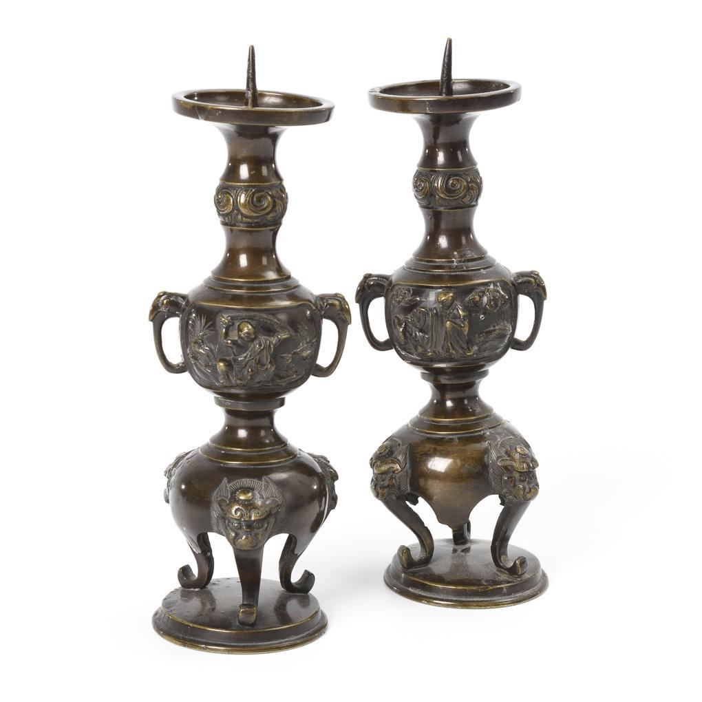 Pair of bronze chandeliers.
