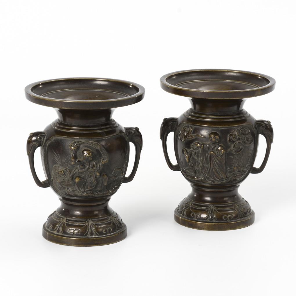 Pair of small bronze vases.
