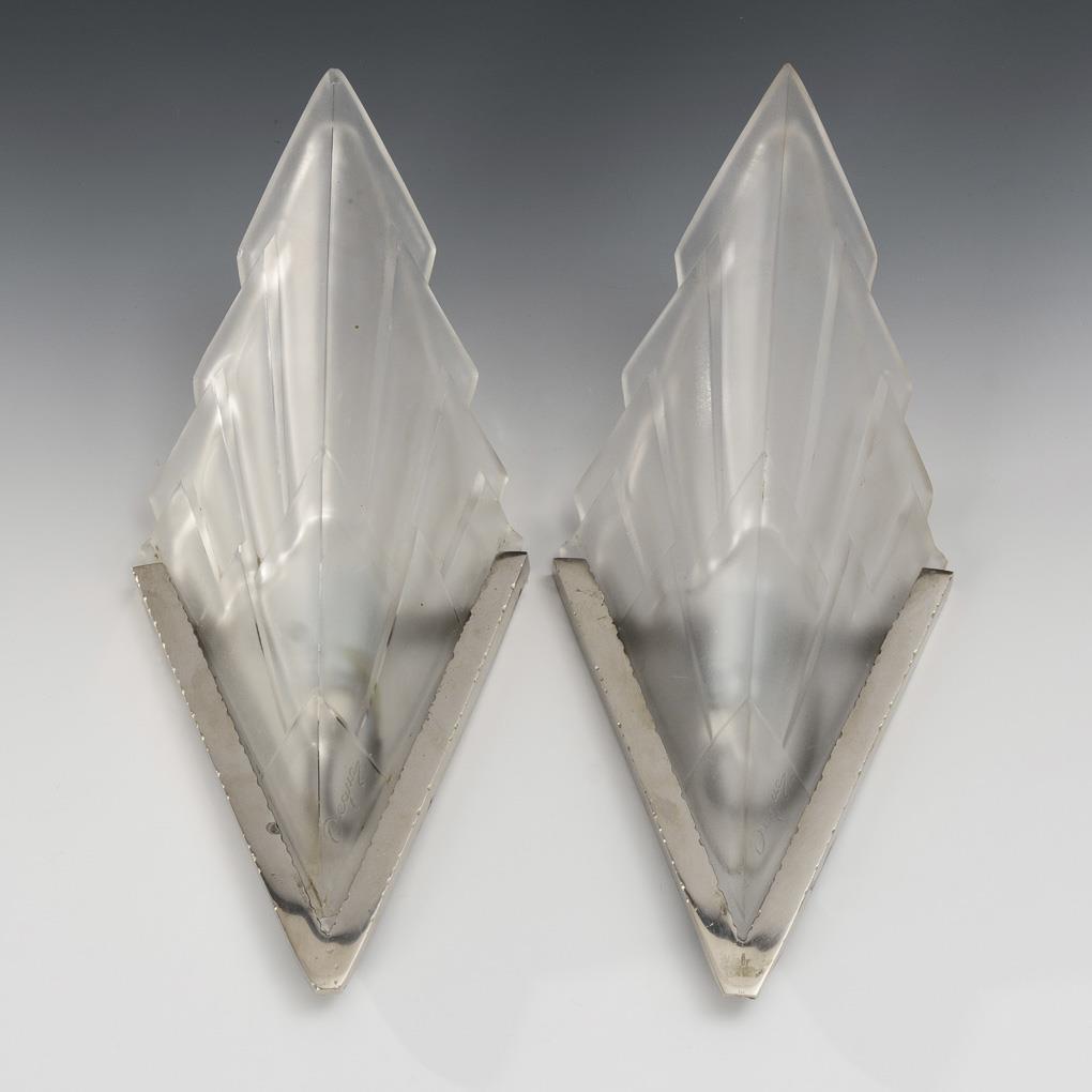 Pair of art deco wall lamps. Degué - Cristallerie de Compiègne.