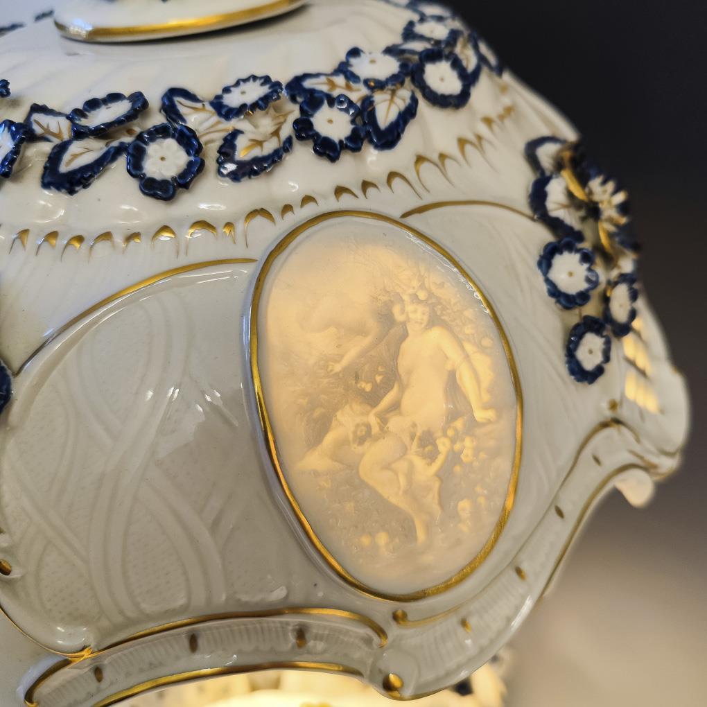 Lithophany lamp with blue painting| see supplement. Shearwood.