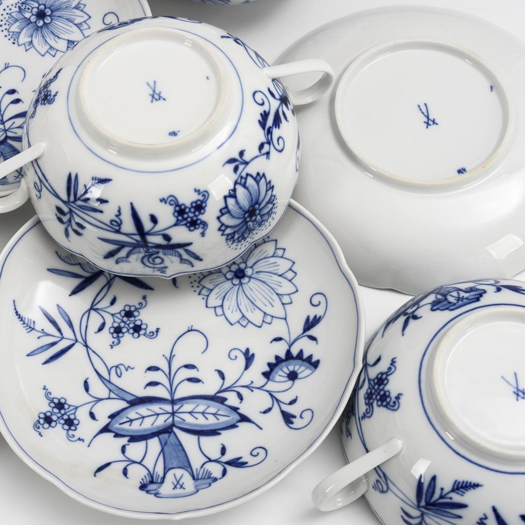 Underglaze blue painting. H cups 5,5 cm, Ø saucers 17 cm.
