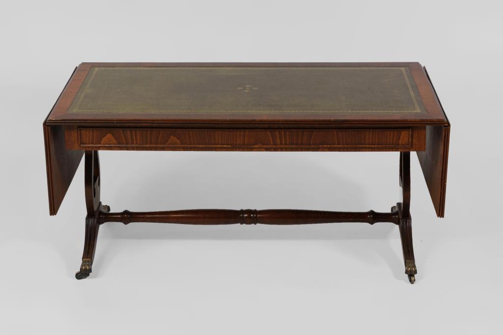 Mahagoni furniert.Ca. 46,5 x 101 x 50 cm (komplett aufgeklappt L ca. 149 cm).