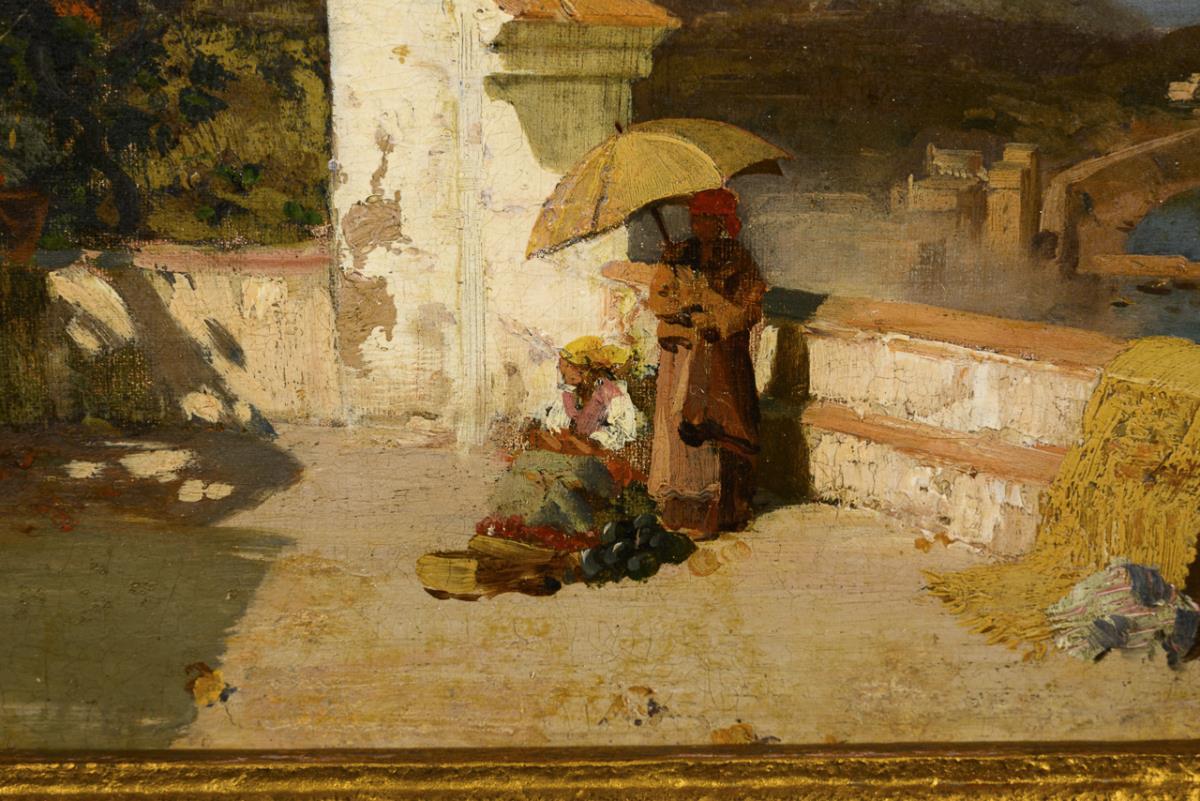 Oil/canvas. Signed lower left with addition Düsseldorf and Capri, verso Italian dedication of the artist from 1884 "Dediccitte alla Signorina Erminia Sondermann, Ddf. [...] 1884 C. Wuttke". (18)84.