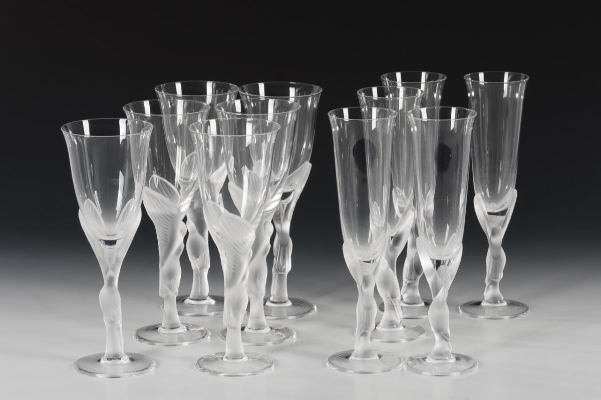 6 wine glasses and 5 champagne glasses "Kissing Snow Doves".