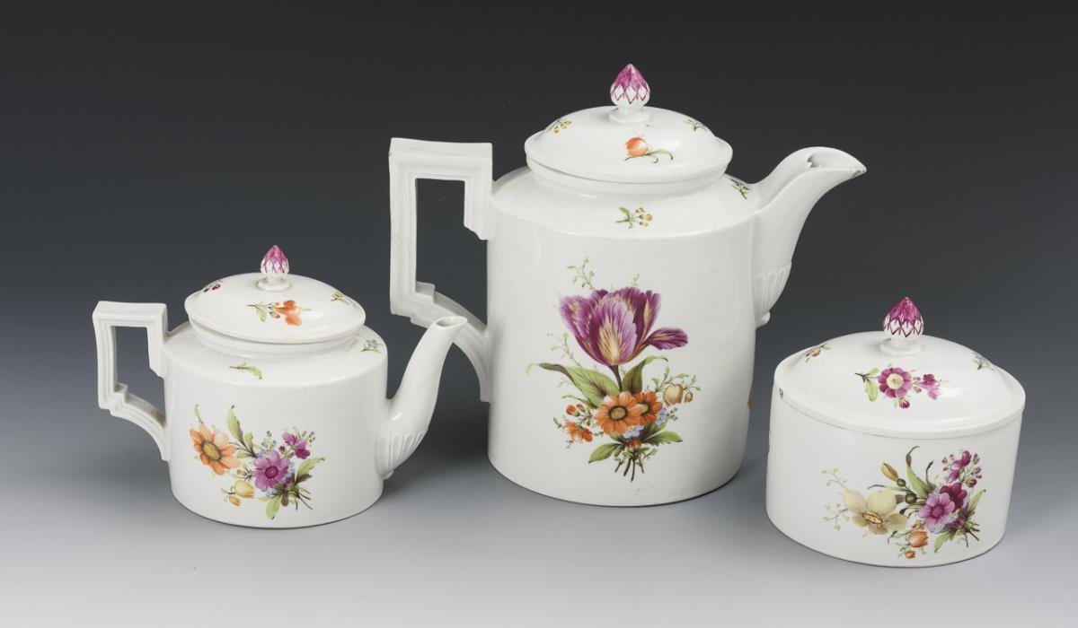 5 pieces of Empire coffee service with floral painting. Fürstenberg.