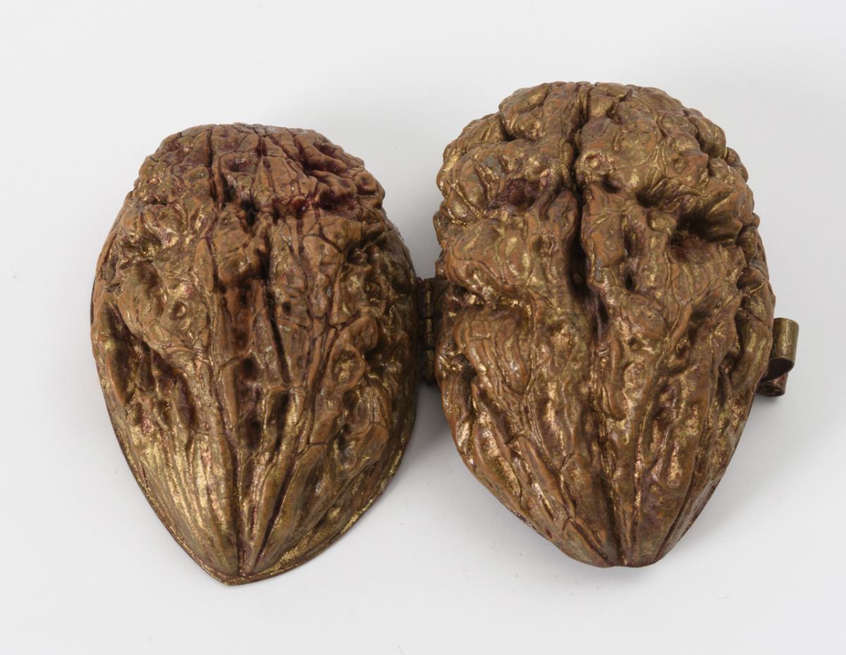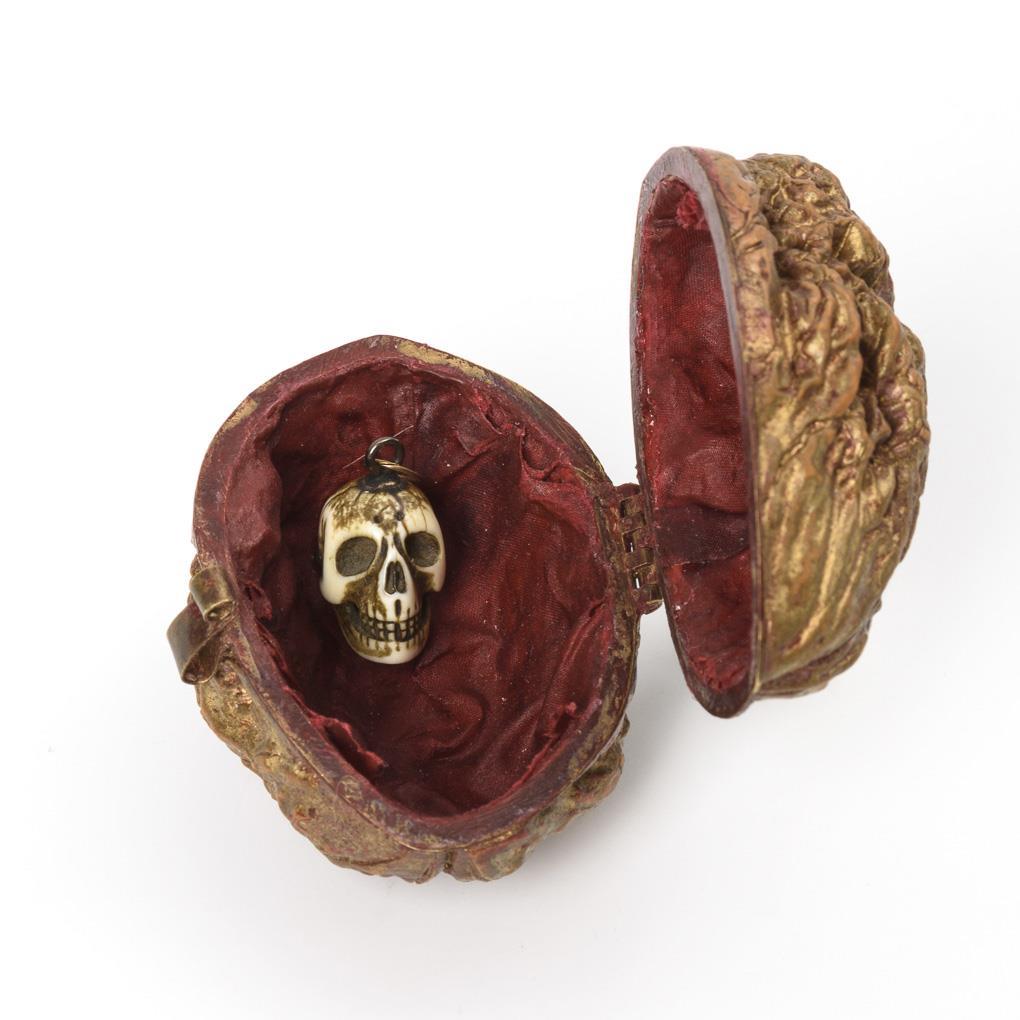 Large walnut with hinge; inside a skull as a pendant.
