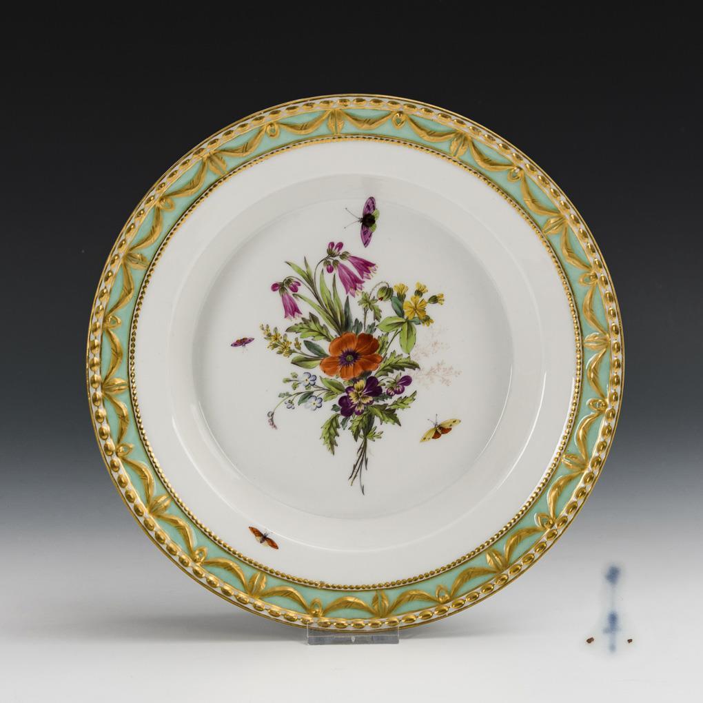Soup plate with a bouquet of field flowers and calices. Probably from a service for Prince Henry of Prussia or King William II.. 1 minimal bump on the relief decoration.