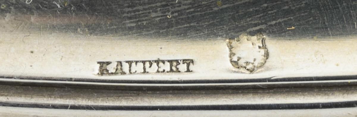 Inconclusive hallmark/master stamp Kaupert hallmarked and V/750 hallmarked. End of 19th c. Probably Kassel.