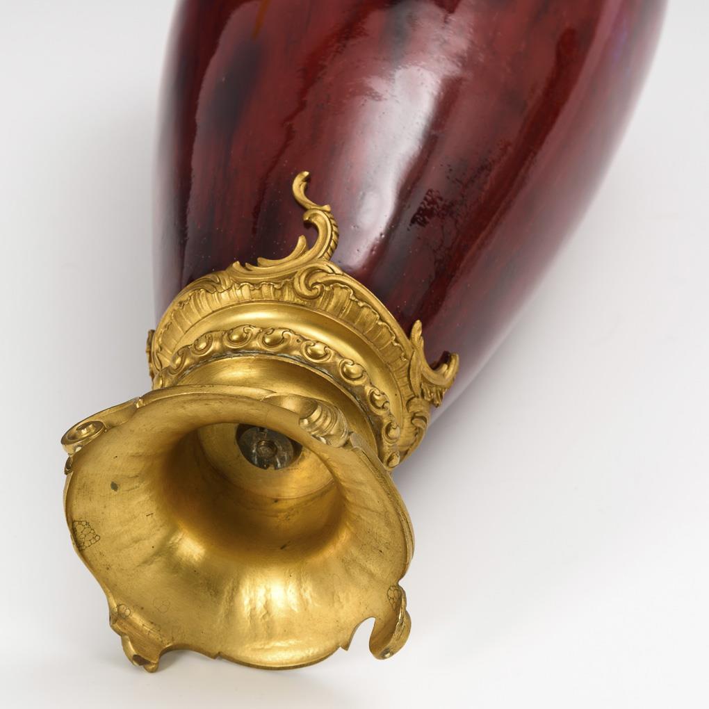 Seger soft porcelain, white-blue and oxblood running glaze. H 30,5 cm.