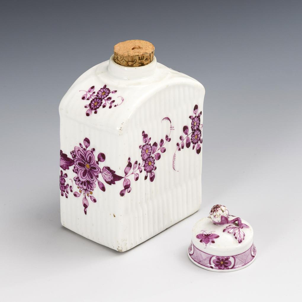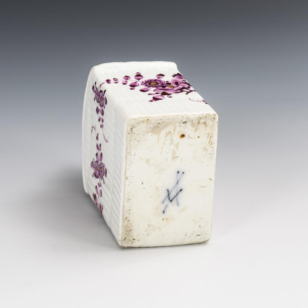 Baroque tea caddy with purple painting. Meissen.