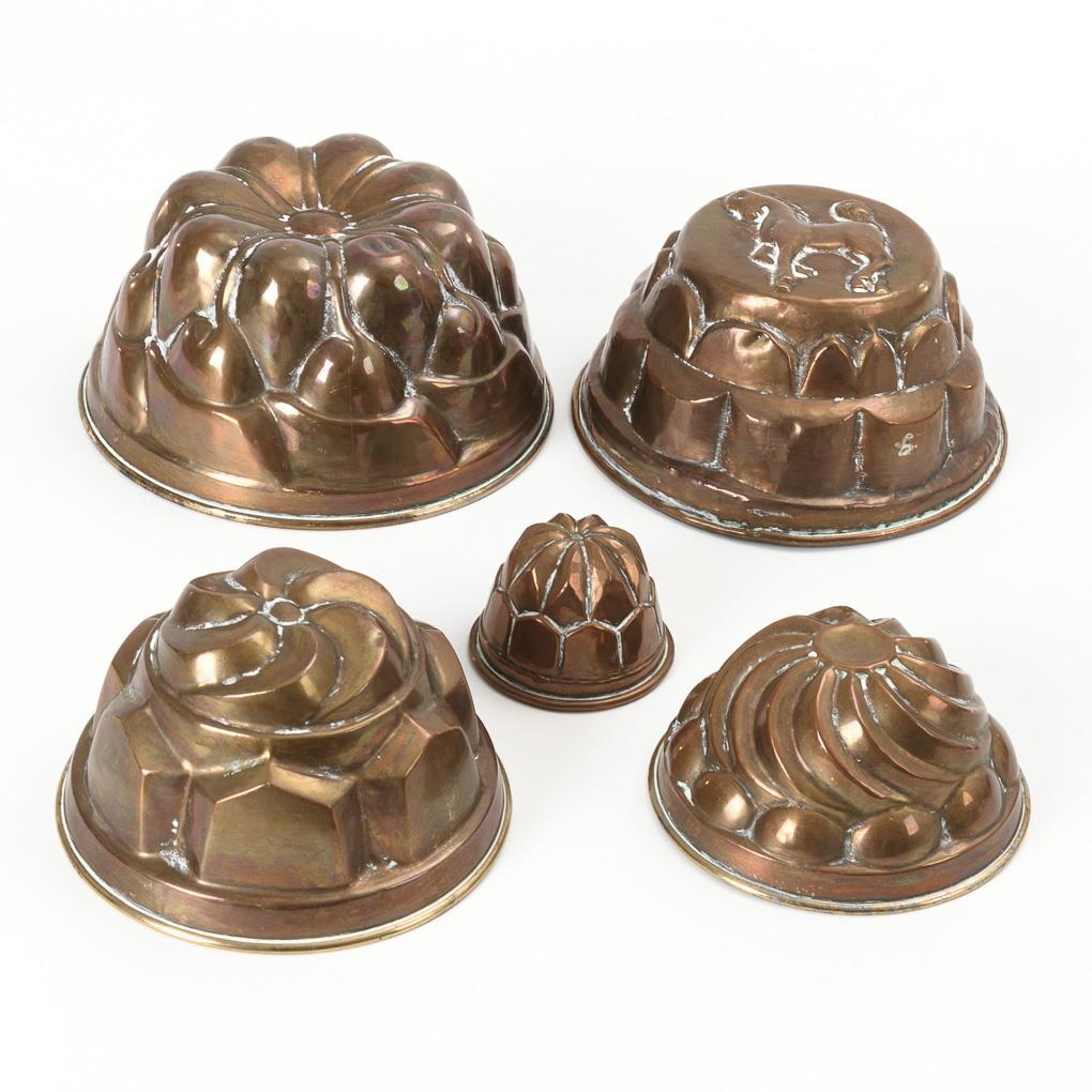 Copper sheet each tin-plated inside. H 6 - 11 cm, Ø 9 - 23 cm.