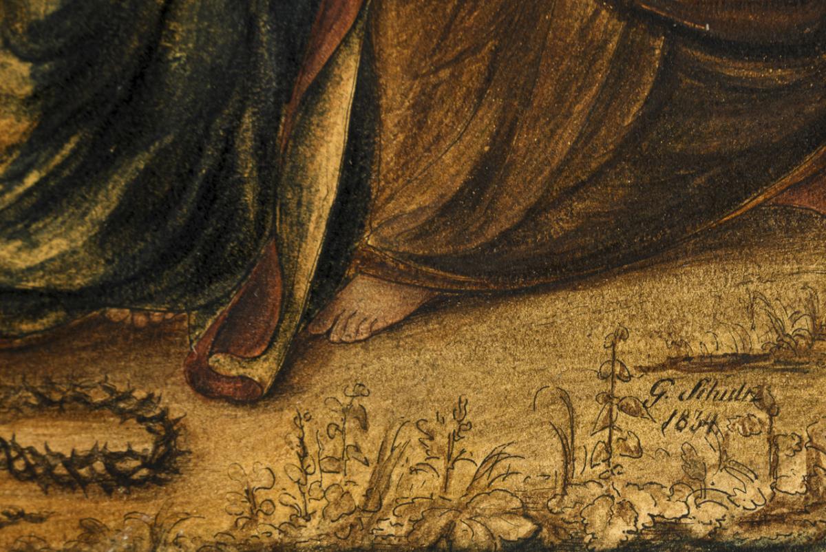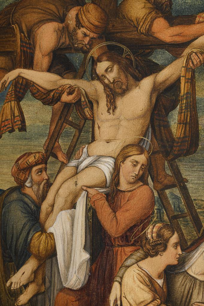 New Testament scene with Jesus. Mounted on gold-colored cardboard.