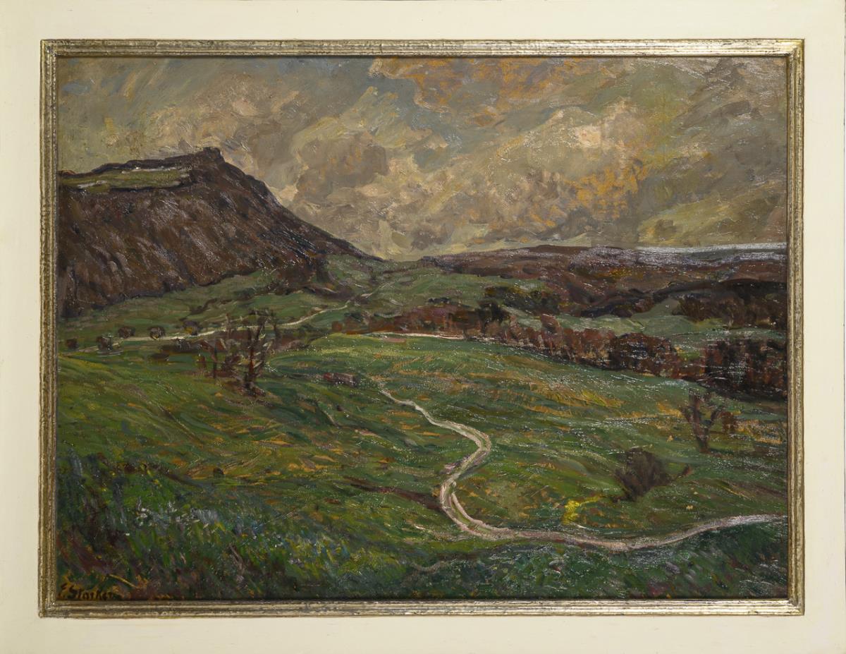 Oil/painted cardboard. Signed lower left, verso on adhesive label of the Württembergischer Kunstverein inscribed / titled.