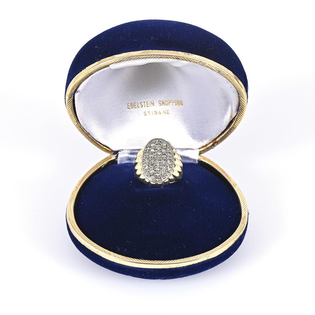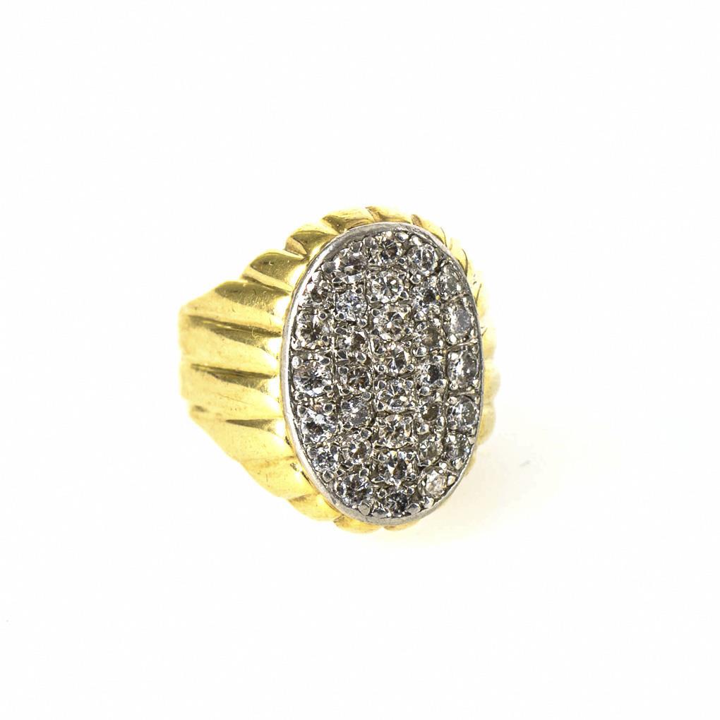 Heavy ring with 32 pavé set diamonds, between wide rail..