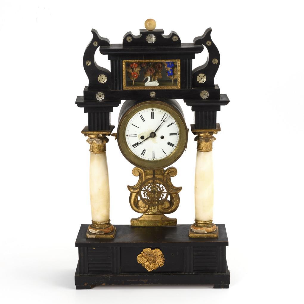 Biedermeier portal clock with showcase motif.