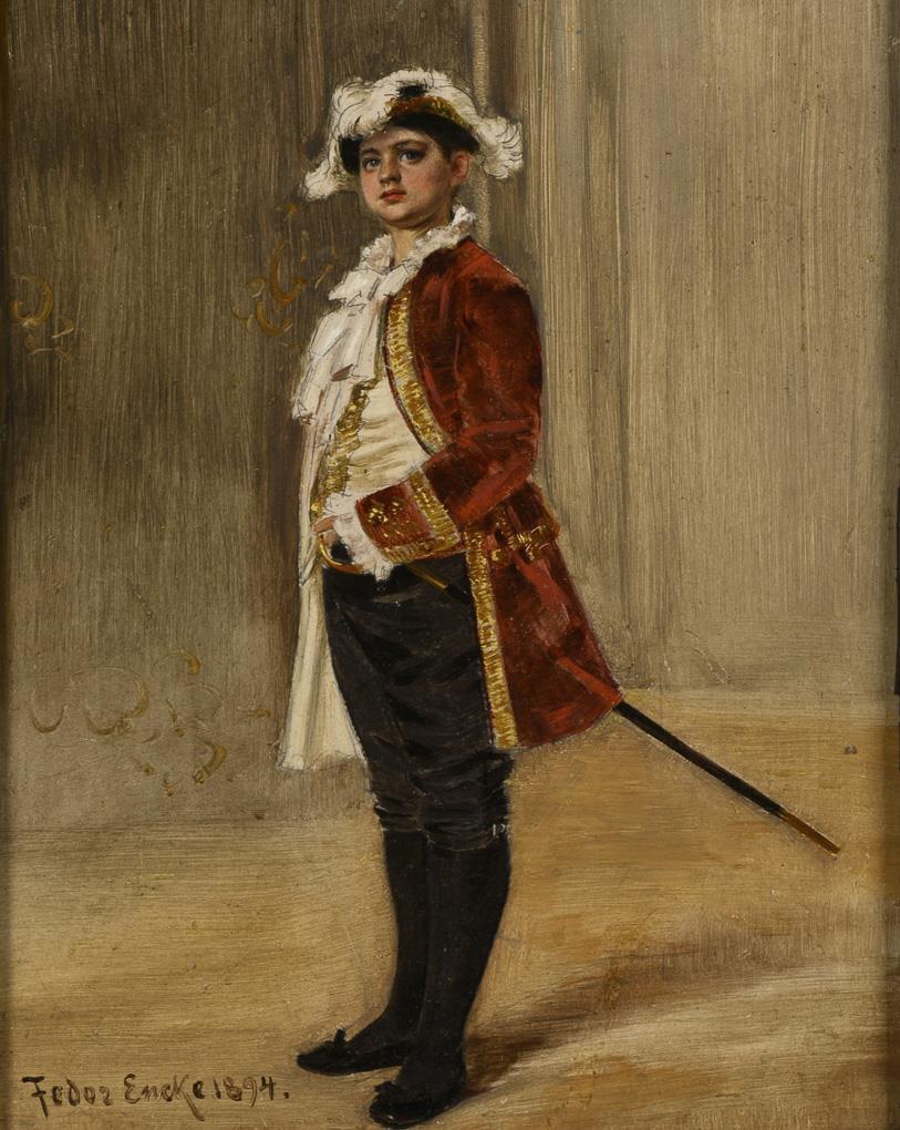 Boy in courtly uniform with saber
