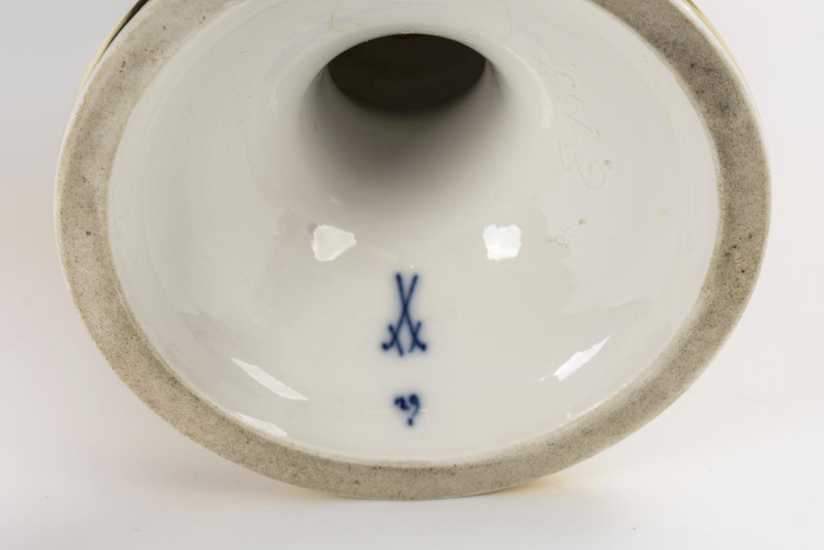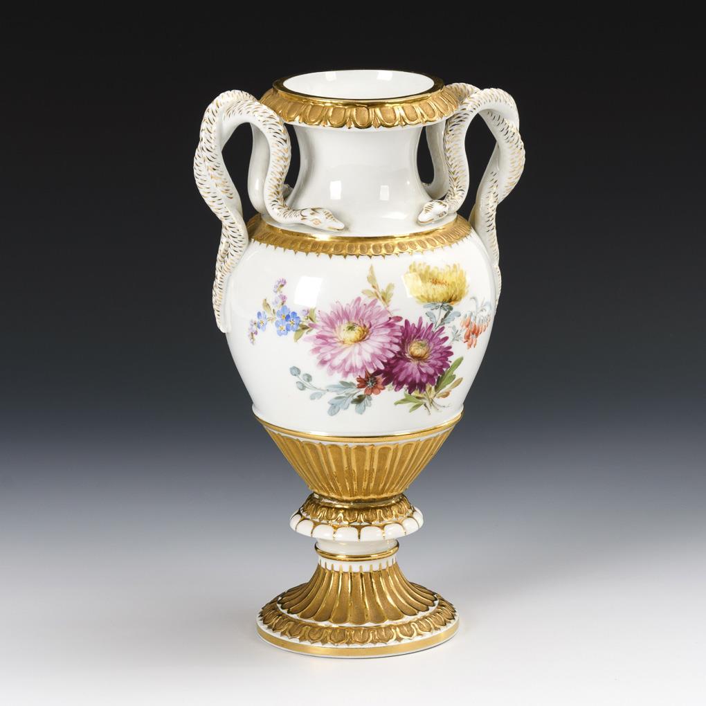 Snake handle vase with floral painting. Meissen.