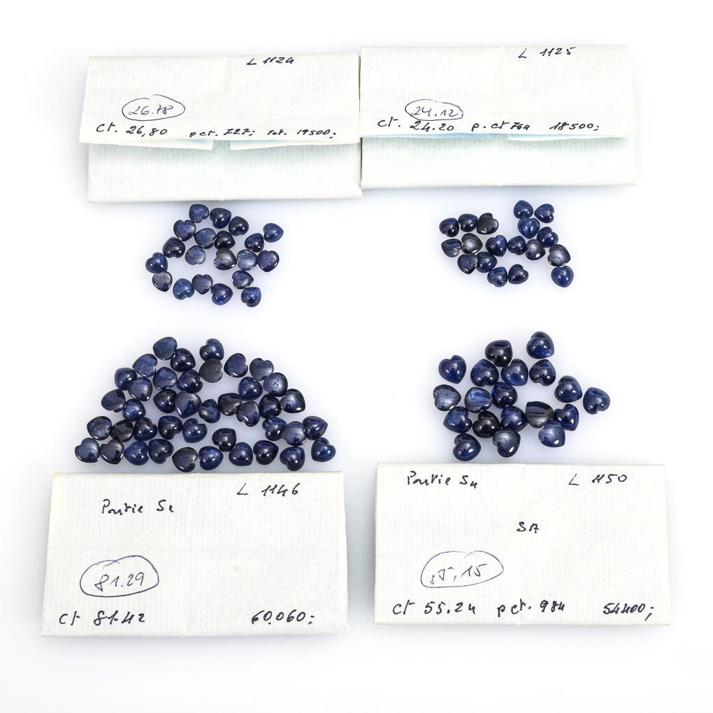4 Konvolute mit je 20, 18, 41, und 19 Saphircabochons in Herzform.