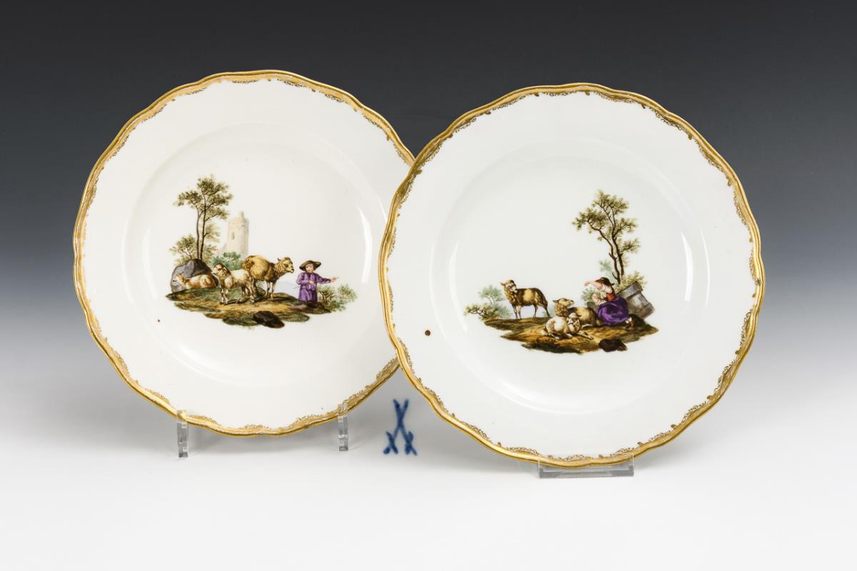 Polychrome painted, gold decorated. Ø 24,5 cm.