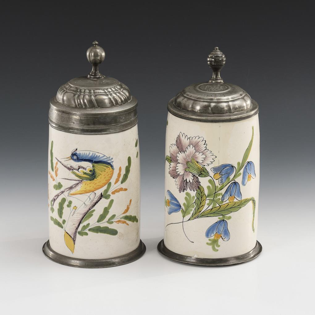 2 South German faience roller jugs. Crailsheim.