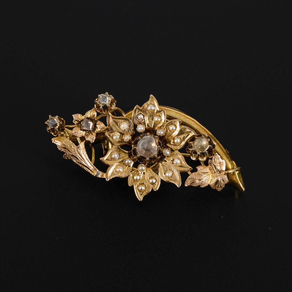 Brooch with old cut diamonds and pearls late 19th c.