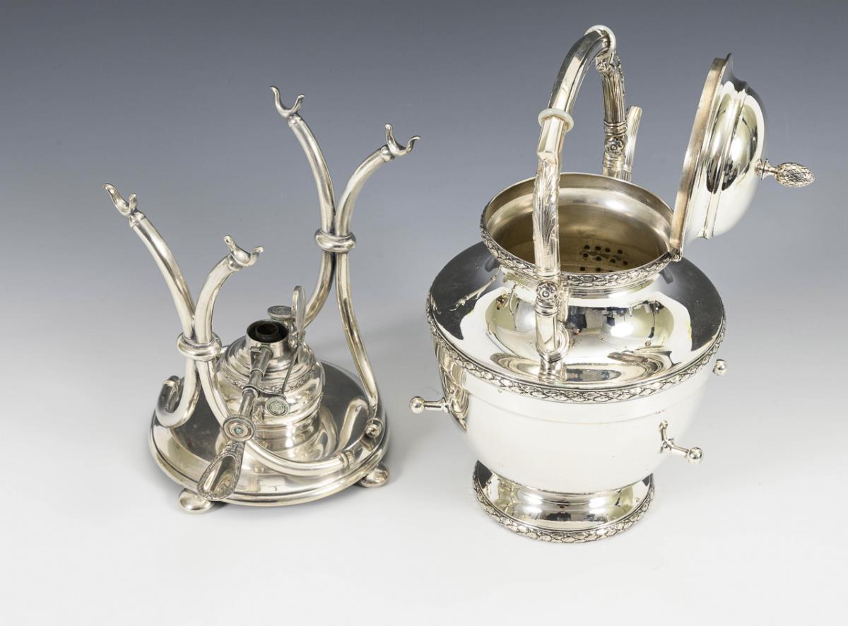 Silver teapot on rechaud. Bruckmann & Sons.