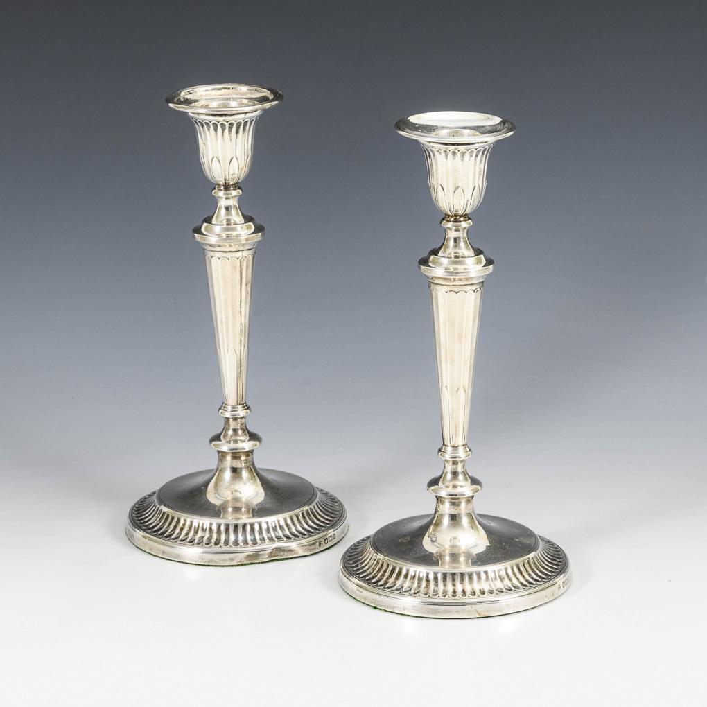 Pair of silver candlesticks. Thomas Bradbury & Sons, Sheffield.